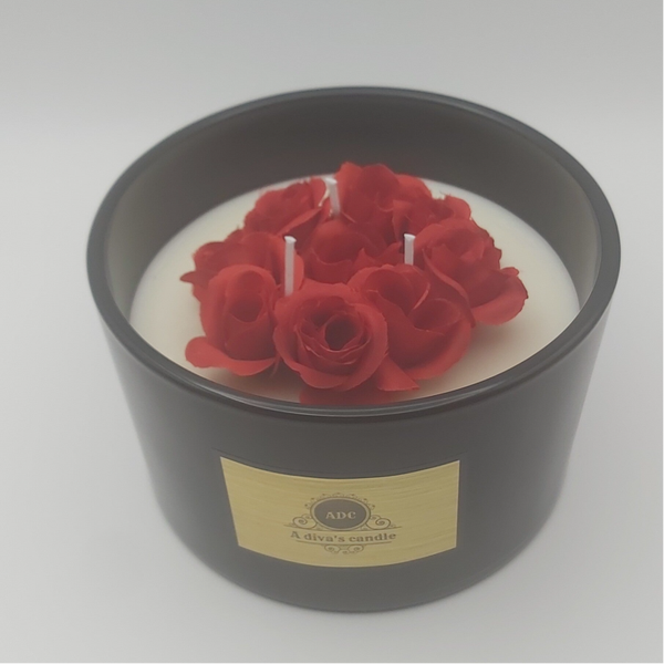 Met trots presenteer ik de Valentijnspecial van 2024. Dit jaar heb ik gekozen voor een chique zwarte schaal met een diameter van 12 cm en een hoogte van 8 cm. De geur die ik hiervoor gekozen heb is een mix van de beste designgeuren waar je u tegen zegt. Deze mix van geuren heb ik gedoopt met de naam 4 the sake off love. Om deze prachtige schaal tot zijn recht te laten komen heb ik ervoor gekozen om het af te werken met rode zijden roosjes, die je er simpel uit kan trekken op het moment dat je je kaars wilt aansteken. Ik kan vol overtuiging zeggen dat ik zeker weet dat jullie gaan genieten van deze prachtige kaars.